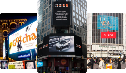 朝闻通全球户外投放网络覆盖纽约、东京、伦敦、巴黎、伦敦,香港,莫斯科,首尔等全球国际大都市, 投放渠道包括户外屏幕、北美电视台卫星直播连线、DirecTV、 机场候机楼屏幕、机舱、加油站、沃尔玛超市等。